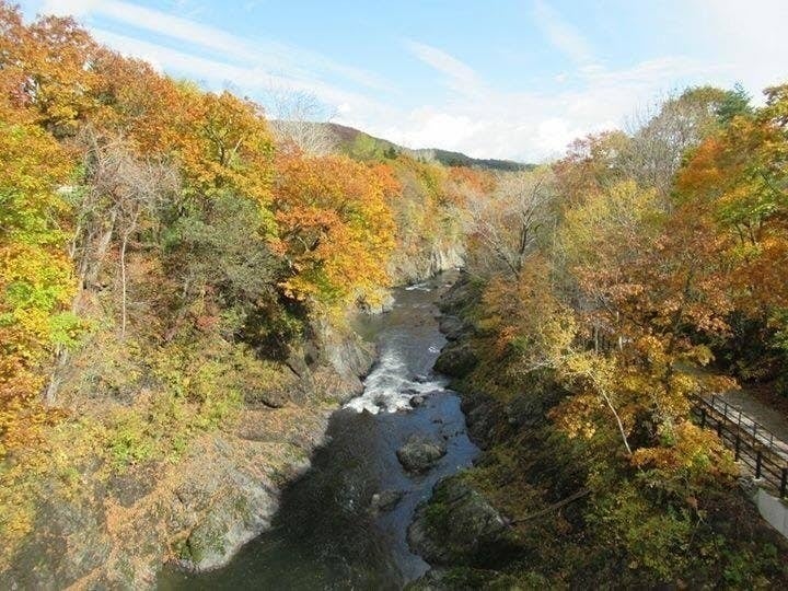 滝上町市街地のほぼ中央を流れますが、このあたりでは大地を深く切り込んだ渓谷になっています。