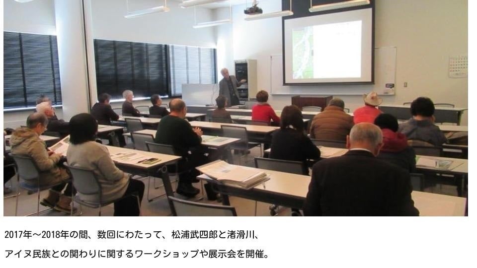 松浦武四郎の著書「志与古津日誌」によると、この渚滑川をのぼって滝上を踏査したときに、「シコツアイノ」というひとりのアイヌ民族に出会い、共に食事をして語り合ったときのことが書かれています。この出会いもまた、松浦武四郎の思想に大きな影響を与えた1つのエピソードであると考えられるのです。しょこつがわ連携研究会では、このことについても紋別市から滝上町の各地で、展示会やワークショップを通して地域の人たちに向けて伝えてきました。