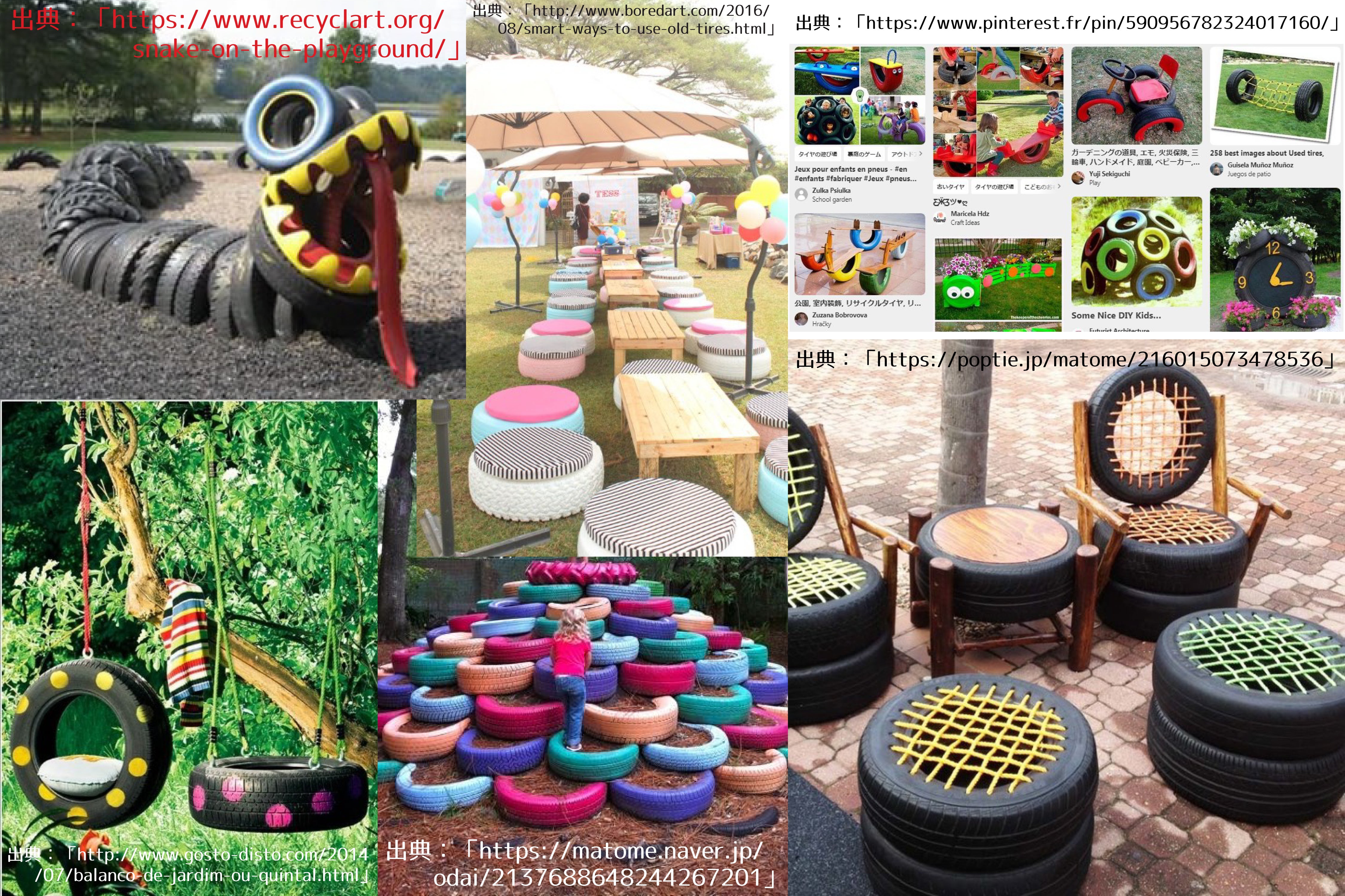 タイヤで作った椅子や、遊具があって、