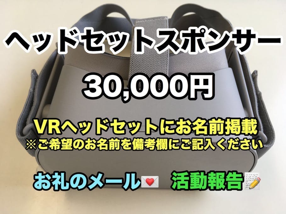 VRヘッドセット1台にスポンサーとしてお名前掲載します(1年間)。