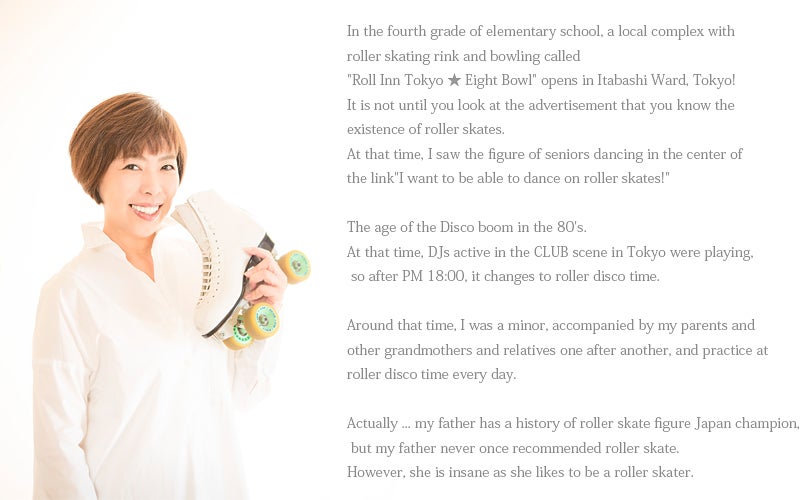 1981年 小学4年生の時に地元、東京都板橋区に「ローラーインTokyo★エイトボウル」というローラースケートリンクとボウリングの複合施設がオープン!初めて、ローラースケートの存在を知る。当時、リンク中央で踊る先輩方の姿を見て「私もローラースケートで踊れるようになりたい!」と強い憧れを抱き通い始める。