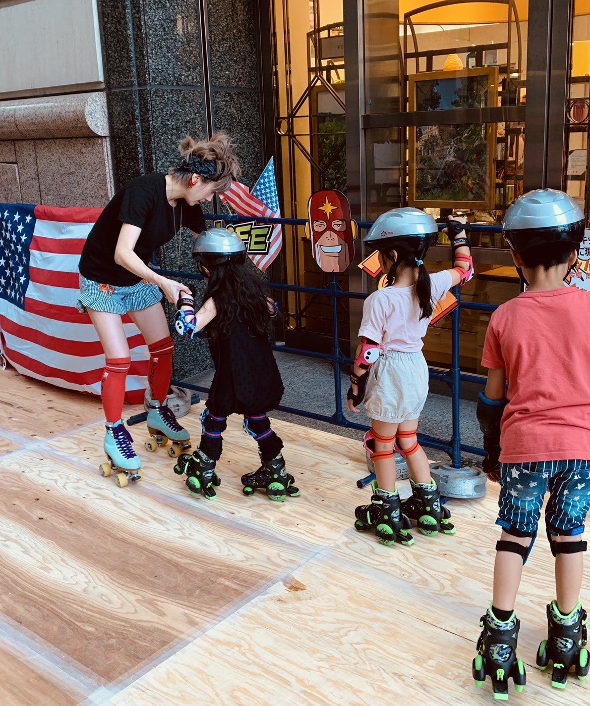 ・少年隊の錦織さんにローラースケートのインストラクターをする