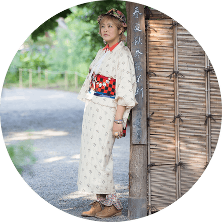 この形にすることで、和装ならではのアイテム数を減らして少しでも簡単に。そもそも見た目が一般的な和装の枠から飛び出しているから、「そんなことしてもいいんだ?」と思わせることができ、新たに着物をはじめたい!とおもっている人の一歩を踏み出すきっかけになればと思いこんな独特なスタイリングでの活動をしています。