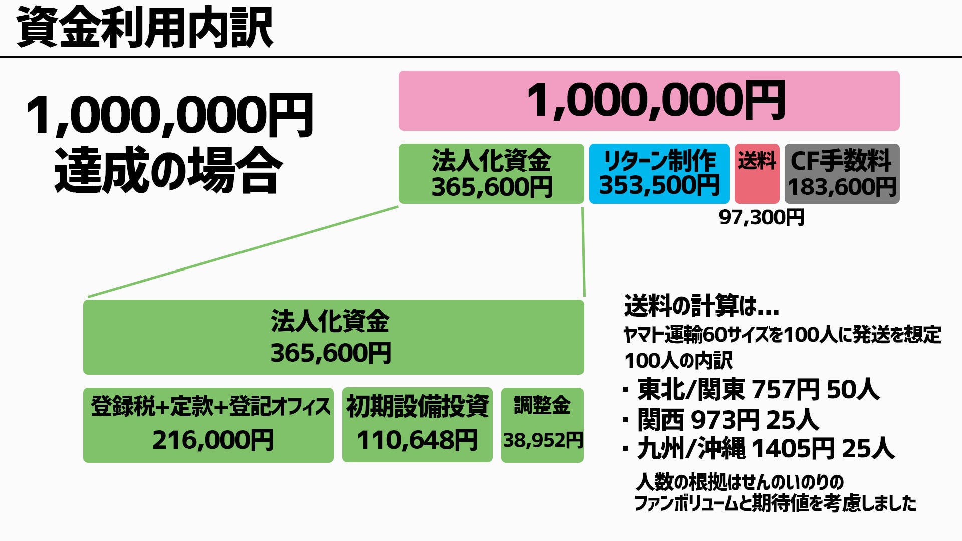 法人登記の他にリターンの原価や各手数料の見える化を行いました。