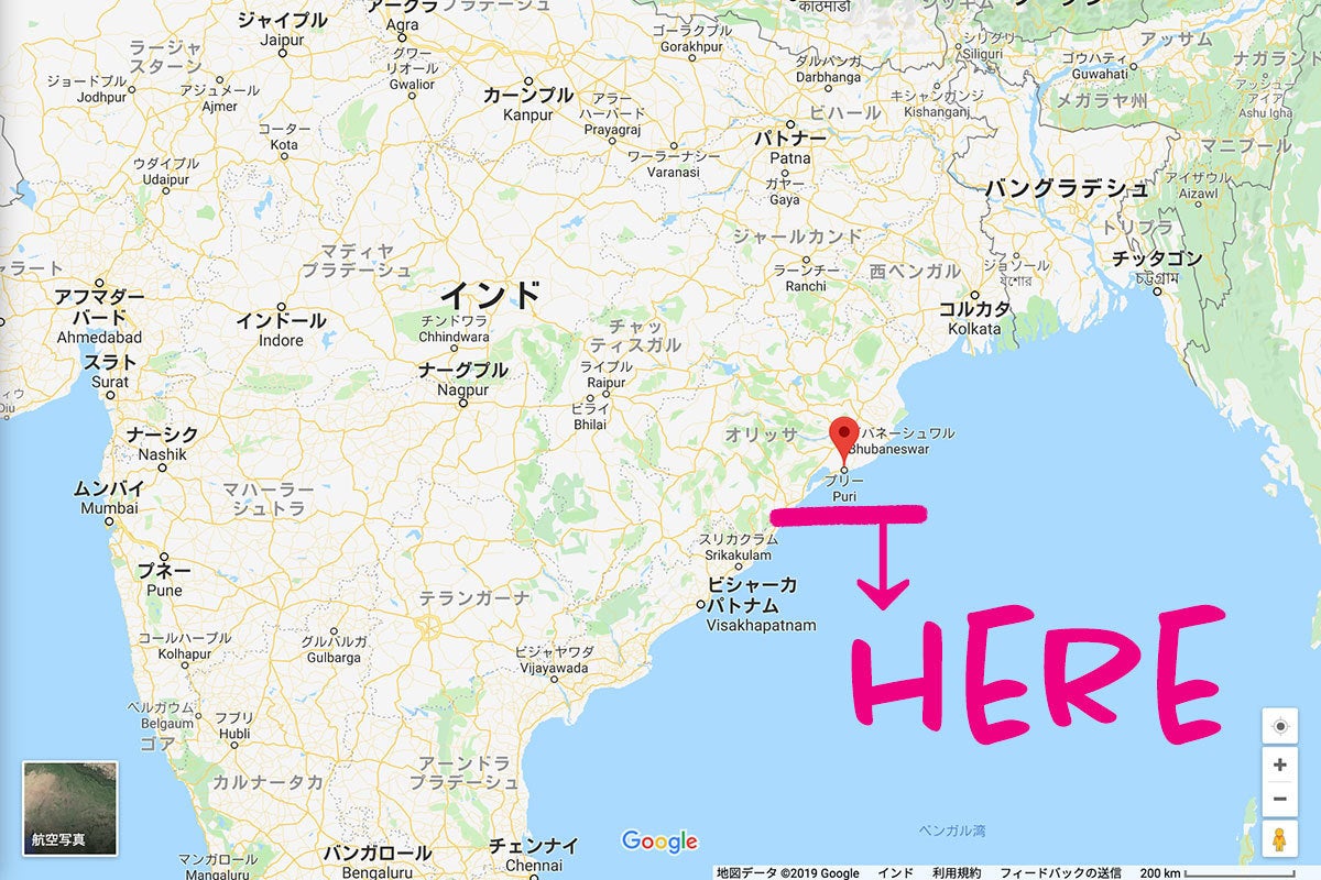 プリーはインドの首都デリーから約1700キロ、コルカタから約500キロのところにあります。