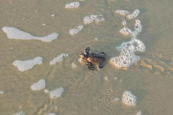宗像・福津の海岸はウミガメの産卵する場所でもあります。漂着した海洋プラスティックにウミガメがからまり動けなくなりそのまま亡くなったり、小さくなったビニール片を誤って食べて、内臓に詰まって亡くなるウミガメがいるなど極めて深刻な状況です。