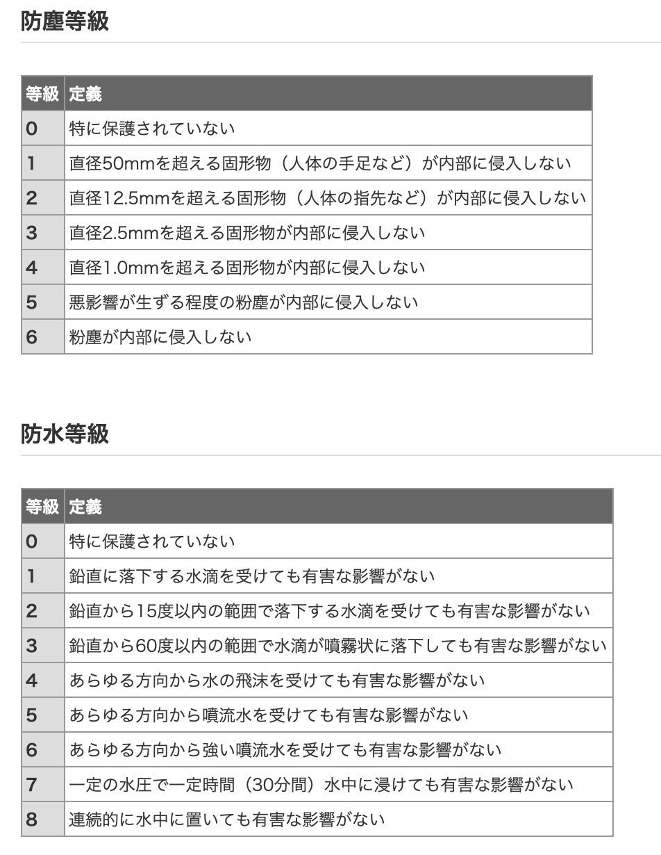 国際的な保護基準として、防塵と防水の各等級を表しており