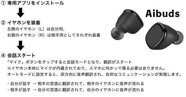 Aibudsを一つずつ装着すれば、お互い母国語で即会話がスタート。