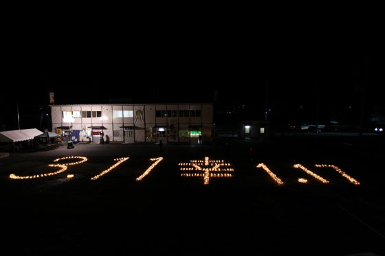 2012/03/12 14:54「3.11希望の光 分灯セレモニー」へのご協力ありがとうございました。皆様のおかげで、1000個以上のペットボトルが集まり、灯りセレモニーを無事 行うことが出来ました。震災により犠牲になった方達を偲ぶ灯りは、この日を忘れないためのものであり、私たちがこれから先、鹿折のために、生き残った人たちが少しでも幸せになるように、進んでいくための灯りでもあります。マルシェは様々な人たちに支えられ、スタートすることができました。心から感謝いたします。ありがとうございます。気仙沼 鹿折 復幸マルシェ 一同 もっと見る