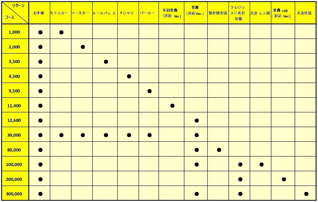 雷轟リターン一覧表↓↓↓