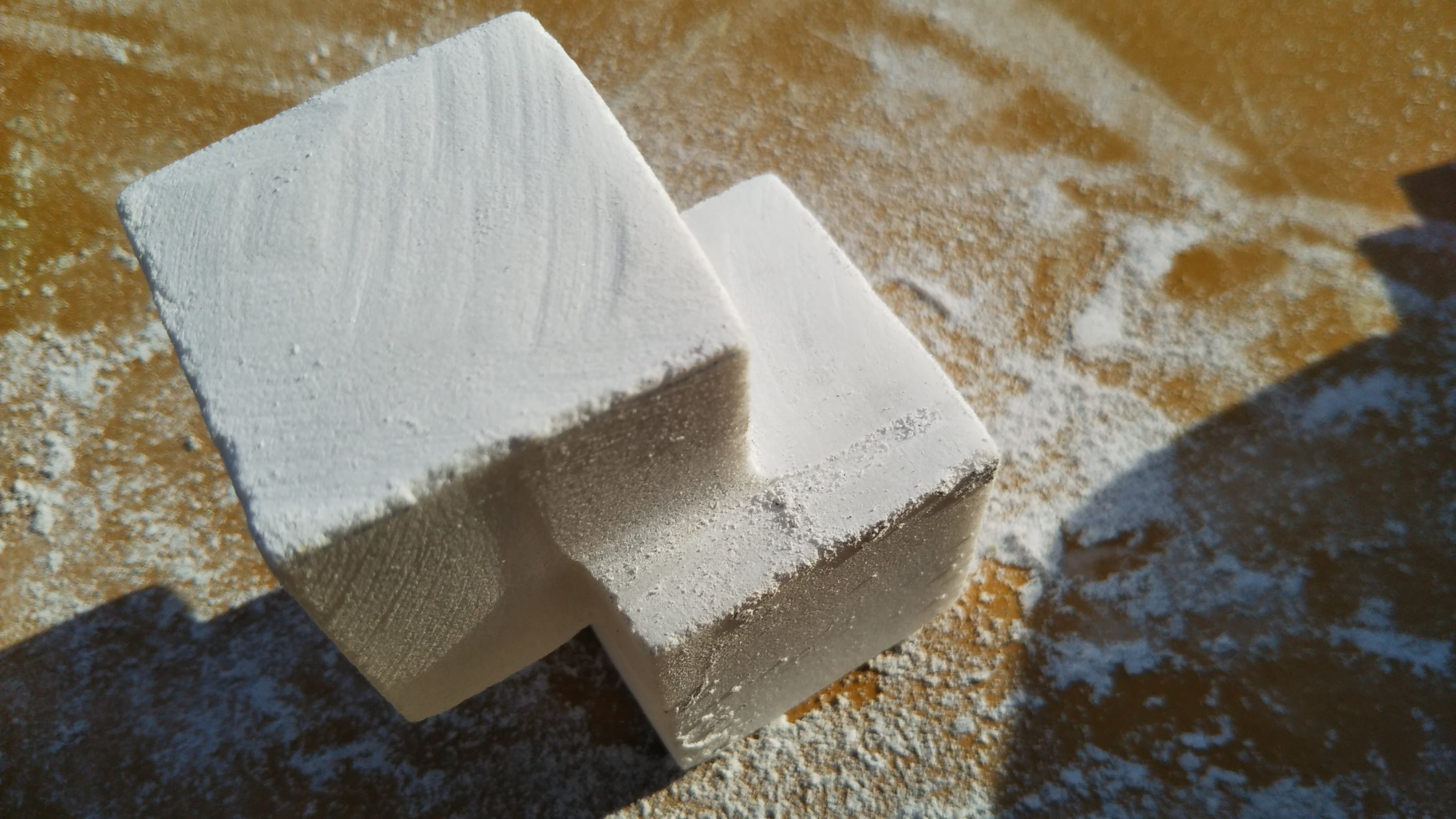 私が選んだのは白い大理石。まずは120番の紙やすりで磨きます。30分くらい磨いたんですけど、下の写真の通り、まだ表面に傷が!!この石を切ったときの傷がなくなるくらい、根気よく磨く必要があります。