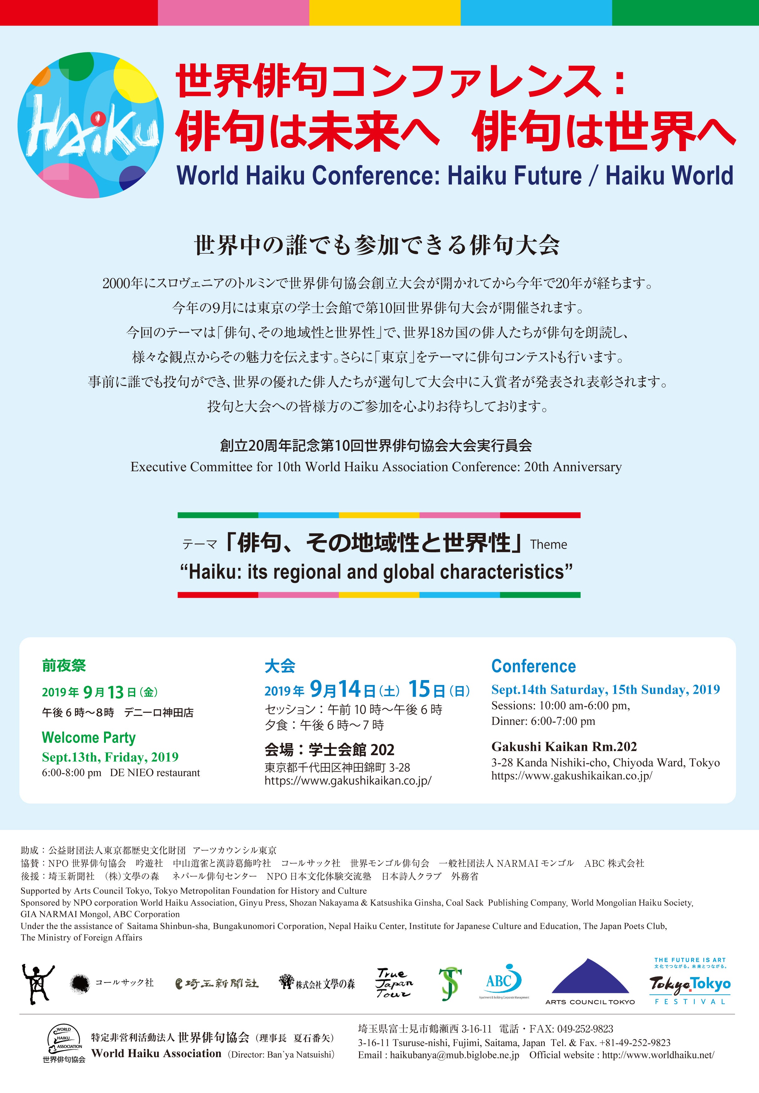 また、最後になりましたが、「世界俳句コンファレンス:俳句は未来へ 俳句は世界へ」の当日のご来場と、俳句コンテストへのご参加も心よりお待ちしております!