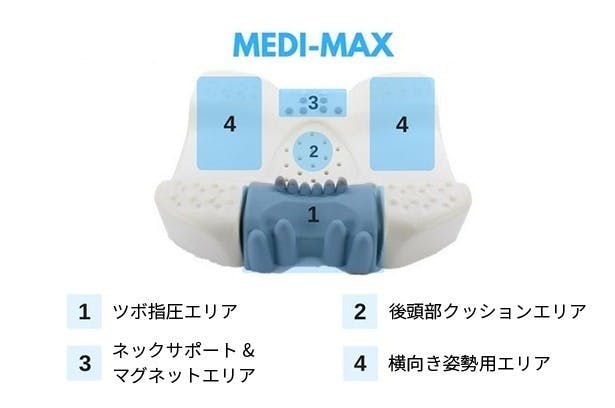 A. Medi-Maxは東洋医学のツボ指圧効果と磁気パルスによる脳内ホルモンの生産を促進するセラピーマッサージ枕です。
