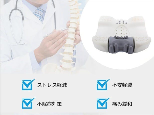 これは海外で法的な国家資格を持ったカイロプラクティックの医師が設計・開発を監修したツボ指圧と磁気パルスの2WAYリラックスセラピー枕です。
