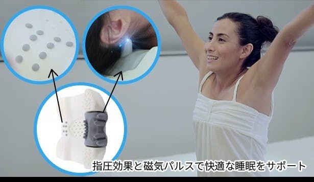 就寝前にリラックス効果のあるツボ指圧が出来て、磁気パルスによって快適な状態で眠れます。
