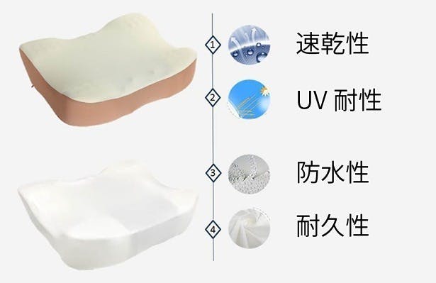 枕カバーは2層構造で、アウターは吸湿性と通気性に優れたポリエステル製で、速乾性とUV耐性があり、汚れたら簡単に洗濯が出来るのでいつでも清潔に使用できます。