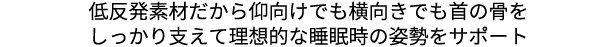 頭の重さを面で吸収することで、頭にかかる負担を和らげて長時間同じ姿勢でも疲れにくい構造で、仰向けや横向きにもフィットします。