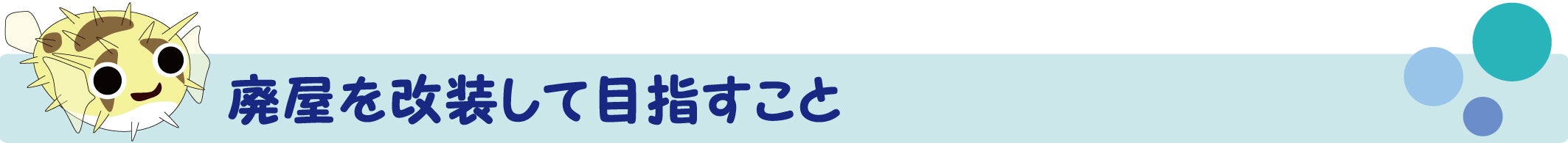 廃屋を改装してミニ水族館型カフェを開業し、地域おこしの先駆けになることを目的とし、下記3点の実現を目指します。