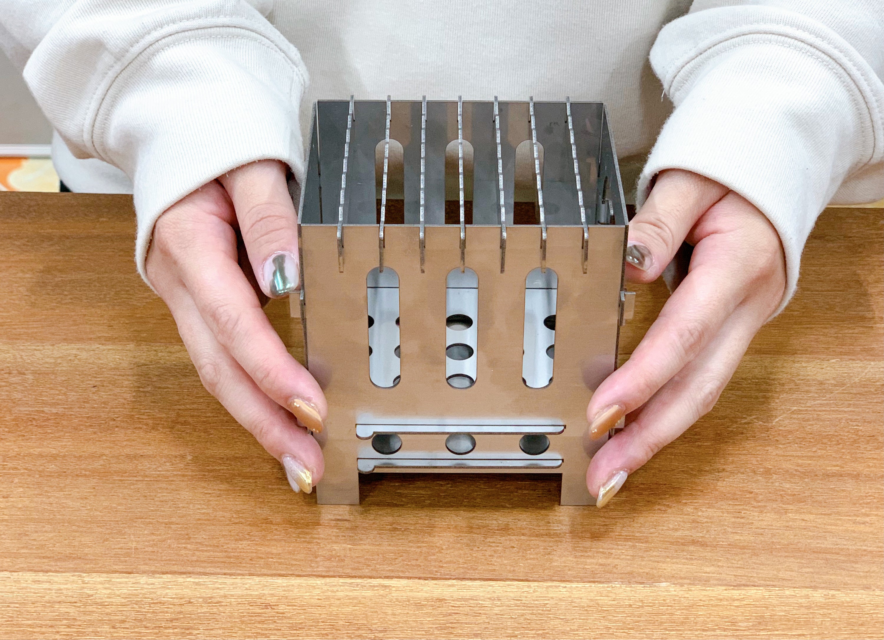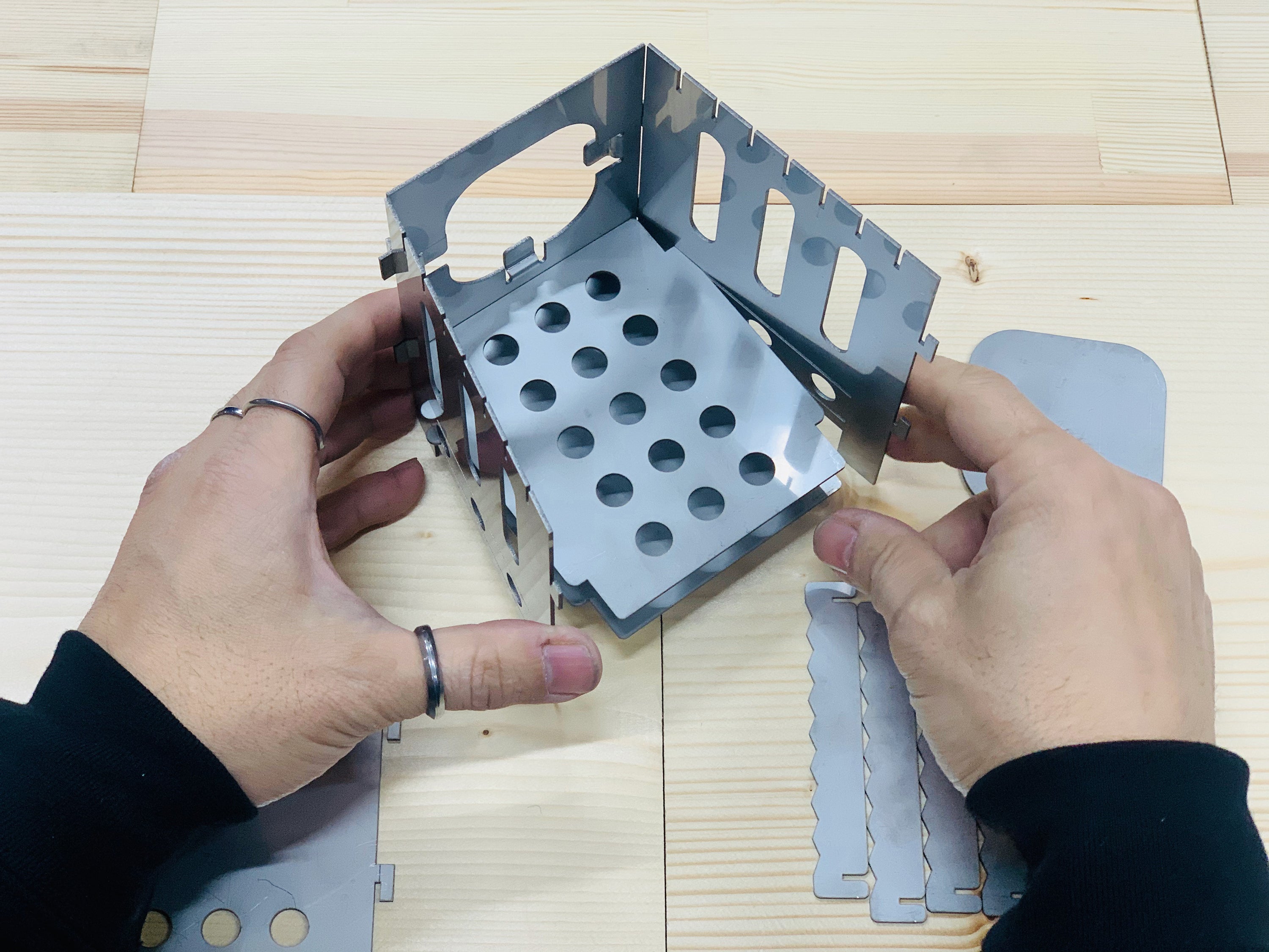 ⑧厚さ1.2ミリのステンレス板14枚。重さはわずか540グラム。