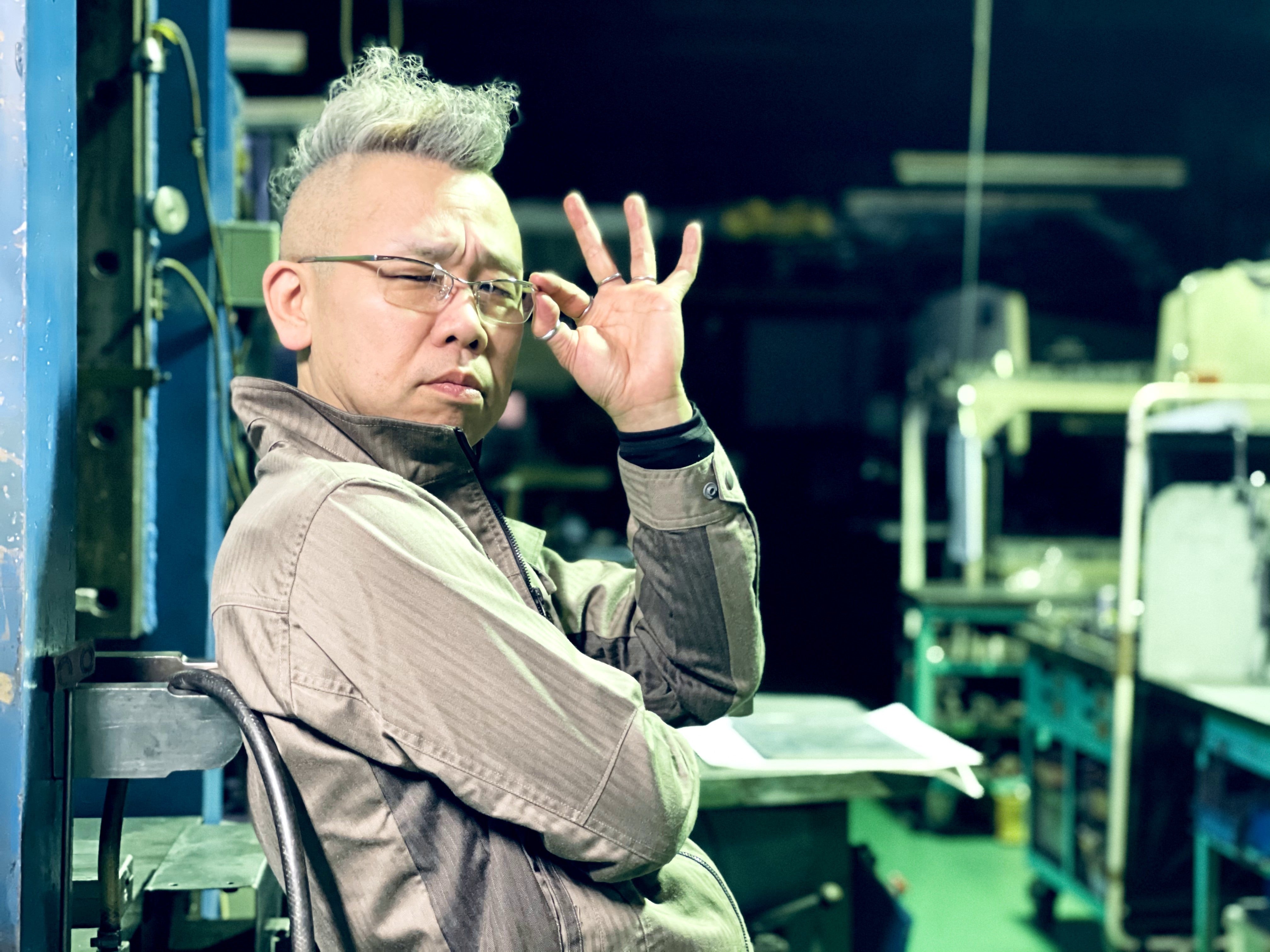 豊里金属工業の代表 岩水建二です。トヨキンのイワケンと呼んでください(笑)。モヒカンヘアーがトレードマークです。弊社は絞り加工、三次元レーザー加工を含む精密試作板金加工を得意とする試作板金工場です。普段はこれから世に出る製品の一番初めの試作に関わっており、アイデア段階からの設計、それをカタチにするスピードには自信あり。「こんなんあったらおもろいんちゃうか」と思ったら速攻で現場に走って作ります。単純におもろいことがしたいし何でも作れるかっこいい職人でありたいから。