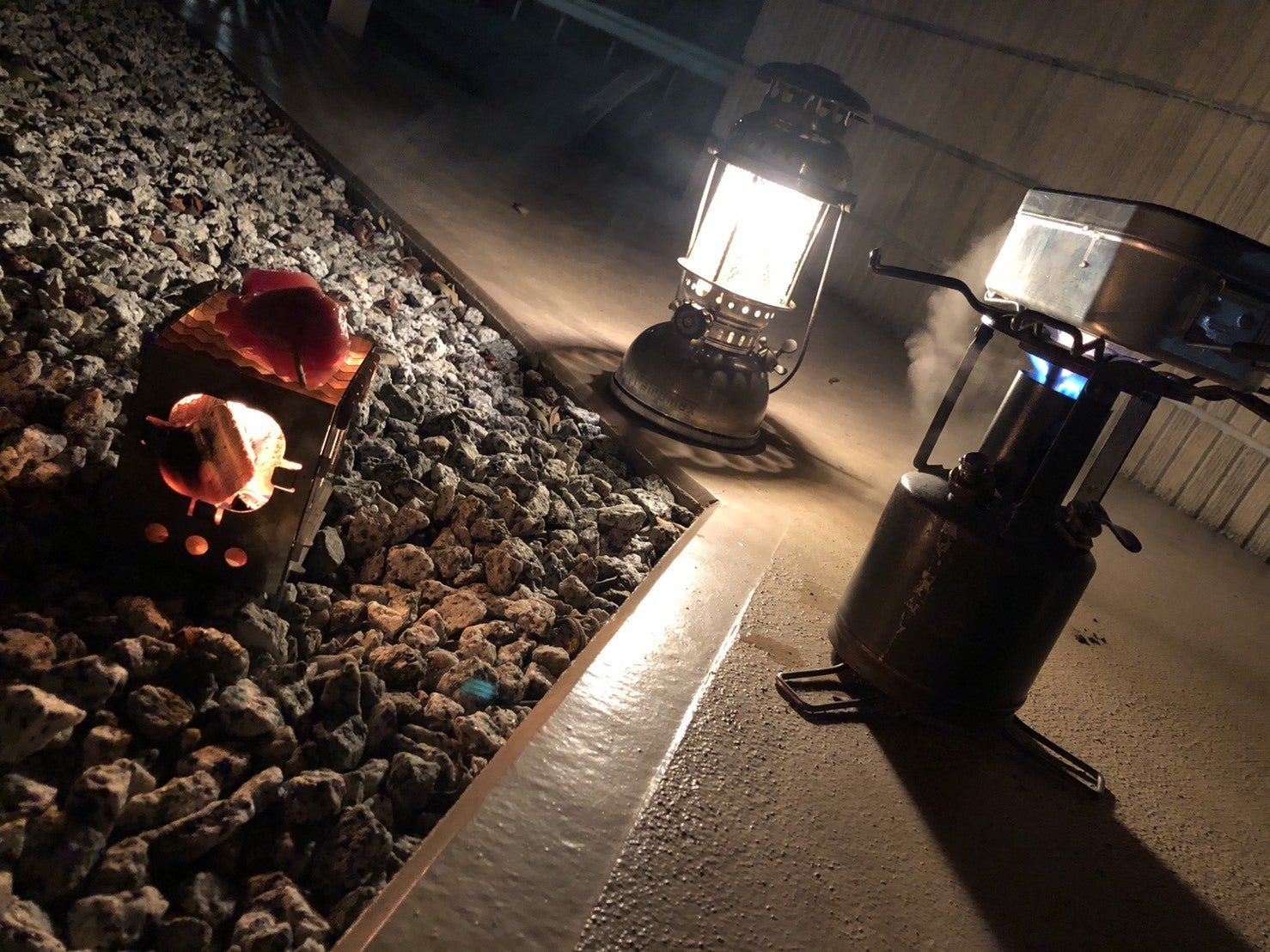 おおっ・・ランタンに照らされた煙がいい雰囲気・・