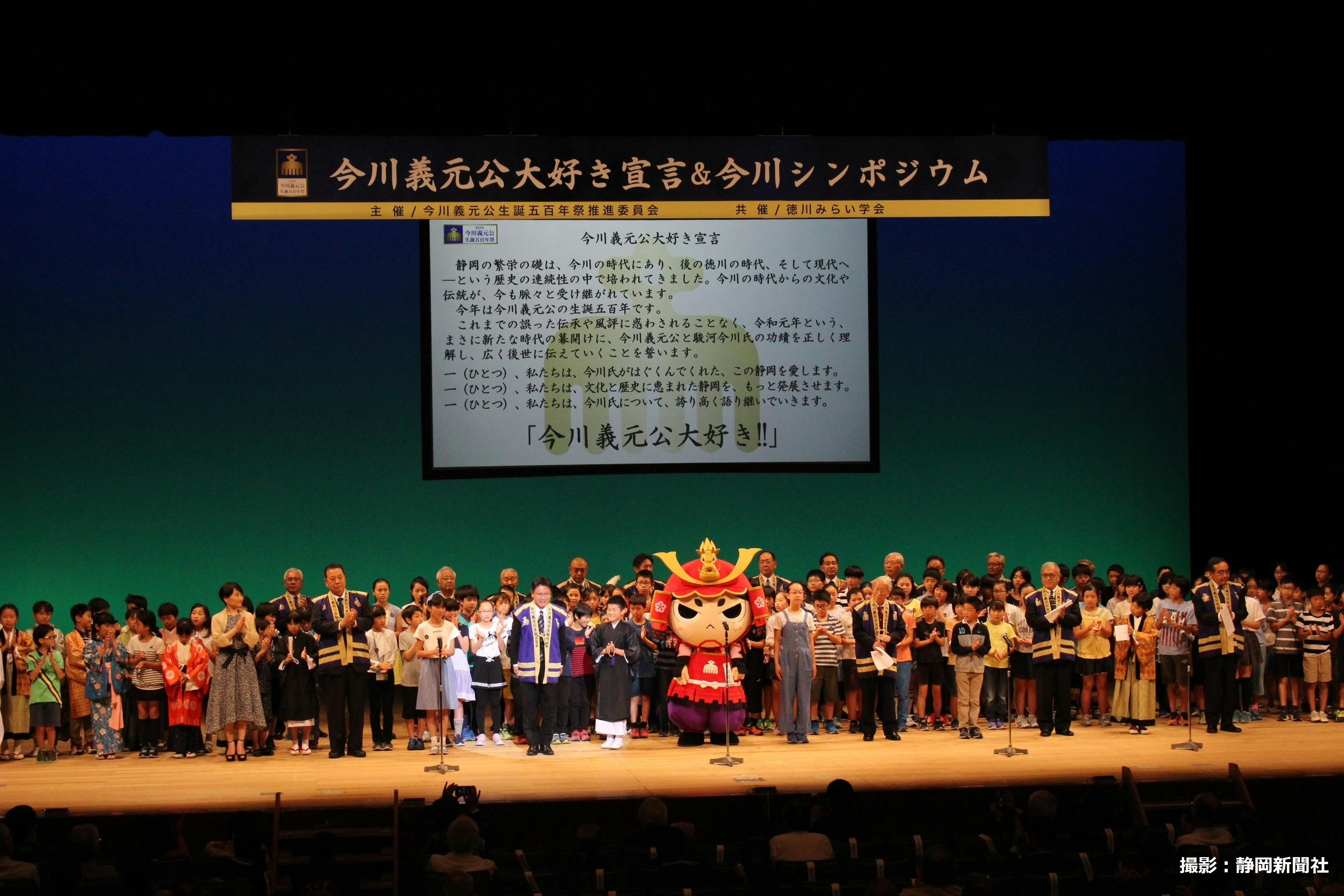 フィナーレは、今川義元公大好き宣言です。未来を担う小学生らとともに今川氏が育んでくれた静岡を愛し、更なる発展をさせ、義元公の功績を後世に誇り高く語り継いでいくことを誓い、会場の皆様方と「今川義元公大好き!」と声高らかに宣言しました。