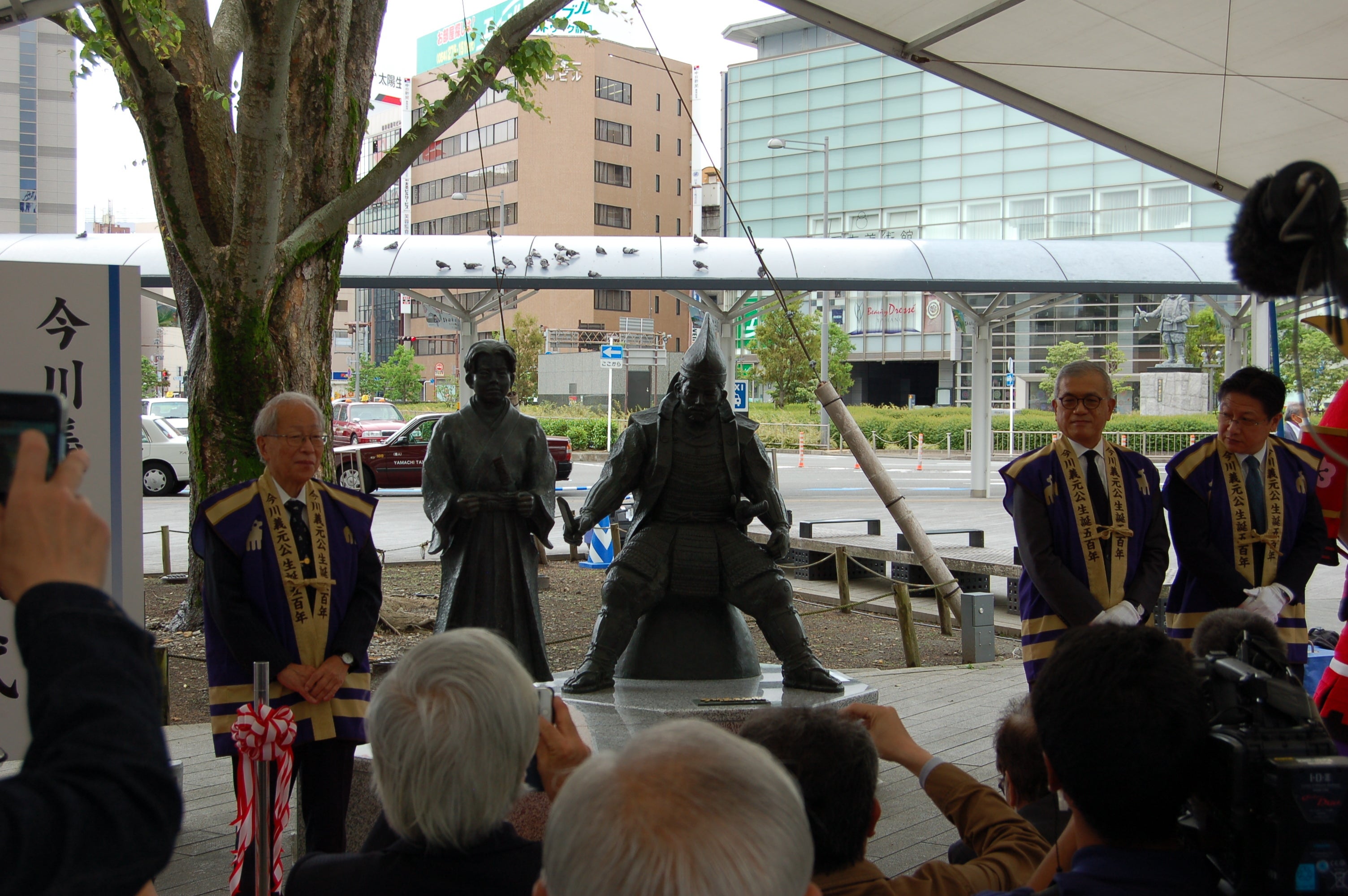 あれから半年程の時間をかけて準備を進めておりました銅像が完成し、今川義元公のご命日でもある5月19日、JR静岡駅前北口広場にお披露目となりました!