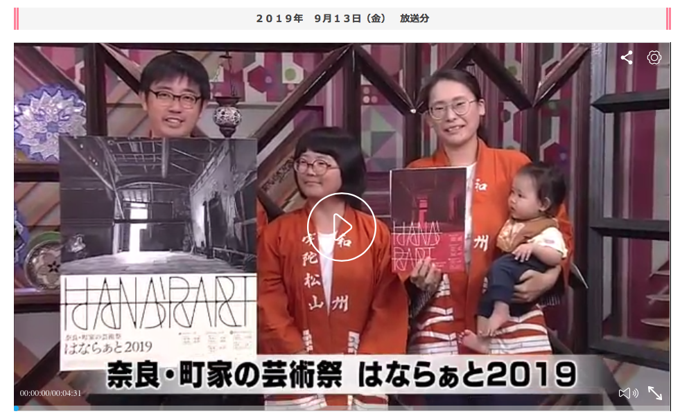 昨日、13日(金)にNHKの「ならナビ」内のイベントナビに、宇陀松山の田川夫婦と事務局飯村(とその娘)が出演して、「はならぁと2019」のPRをしてきました!!