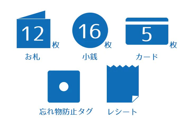 タグを使用しない時はお札、小銭、カード、レシートを全て分けて