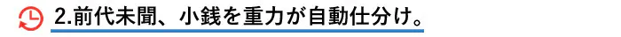 小銭のみが重力で下の小銭入れに入り、お札と小銭を自動仕分けしてくれます。
