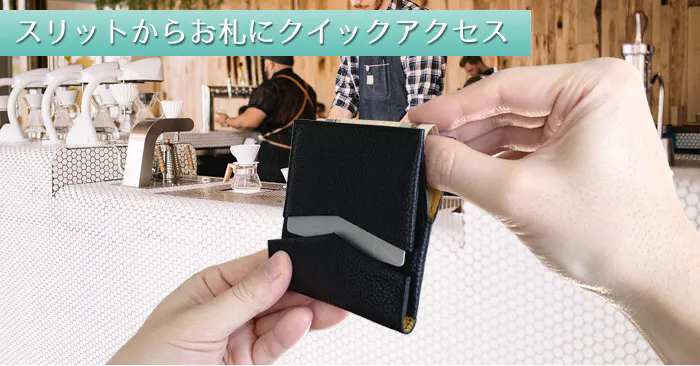 これらの機能が、ポケットの中での違和感・財布が見つからない・会計時のもたつきなど、財布を使う人なら誰しもが感じた事のあるストレスを一掃します。