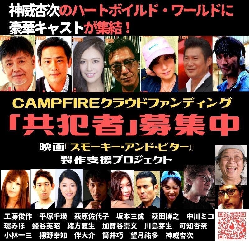 前回の活動報告にて既報の通り「ハートボイルド・フィクション」に続く長編映画第二弾「スモーキー・アンド・ビター」の製作支援プロジェクトが開始となりました!