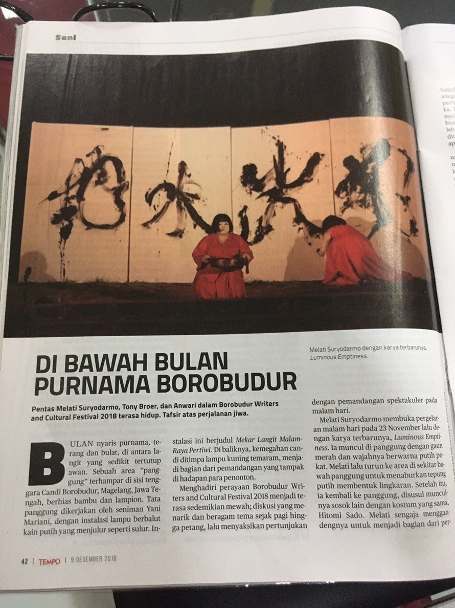 これまで我流で培ってきたけれど「海外で喜ばれそう」と言っていただける機会も増えてきた「舞書」。インドネシアでは世界遺産で書かせていただいて現地メディアに取り上げられるなど、大きな舞台でやらせていただけることも増えました。