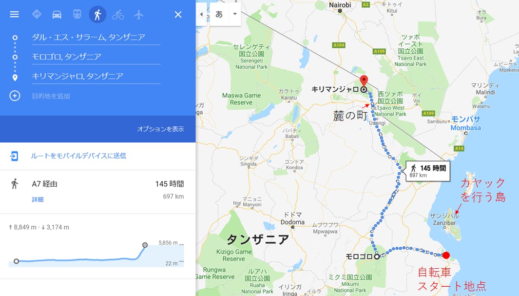9/6-9/7 ダルエスサラームからミクミ国立公園へ ここから自転車↓