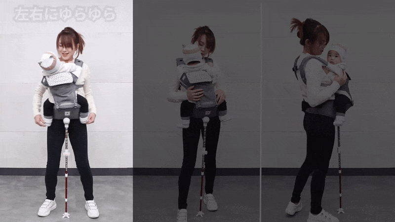 Q: 赤ちゃんを抱っこして歩くと、上下にゆれる自然な動きでよく眠ってくれますが、じっと立っている姿勢でも寝かしつけできるのですか?
