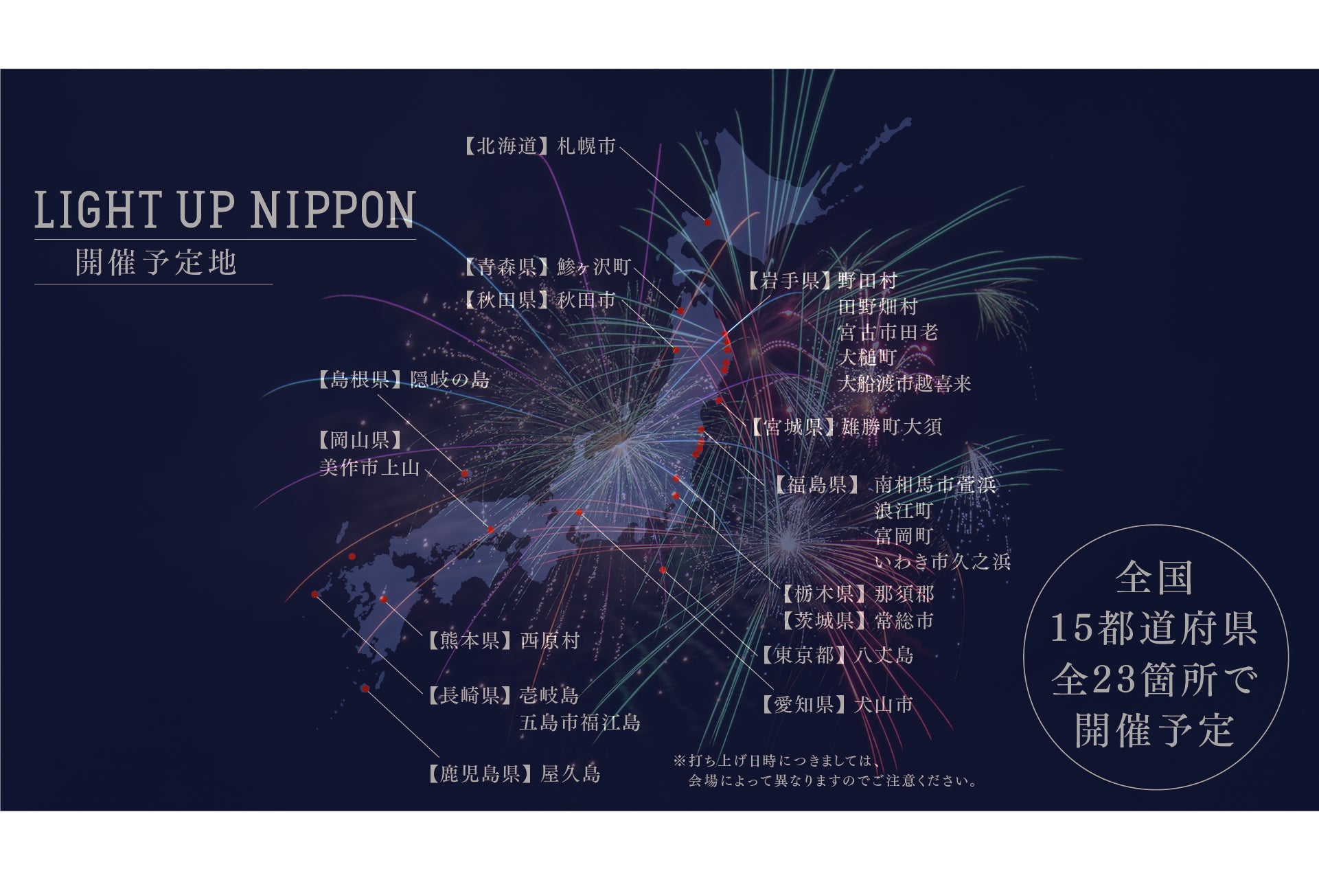 2019/08/26 10:13はじめに この度はLIGHT UP NIPPONが実施いたしましたクラウドファンディング『日本中を花火大会で元気にしたい!』へご支援をいただきましたこと、心より感謝申し上げます。 無事に今年の活動を終えられたことは、ひとえに皆さまの想いのおかげでございます。本活動報告の報告範囲 月命日にあたる8月11日19時30分から、東北3県と九州1県を中心とする会場にて坂本龍一氏の演奏する「赤とんぼ」に合わせて、『鎮魂と復興』の祈りを込めた花火を一斉に打ち上げた会場に関する事柄を、本活動報告の報告範囲とさせていただきます。実施概要イベント名称:LIGHT UP NIPPON 2019 全国一斉花火日時:2019年8月11日(日・祝)19時30分から内容: 月命日にあたる8月11日19時30分から、東北3県と九州1県を中心とする会場にて坂本龍一氏の演奏する「赤とんぼ」に合わせて、『鎮魂と復興』の祈りを込めた花火を一斉に打ち上げる。 また、東北3県と九州1県以外の会場ではこれらの趣旨に賛同し19時30分から21時までの間に『鎮魂と復興』の祈りを込めた花火を随時打ち上げる。主催:LIGHT UP NIPPON 実行委員会協賛:JT(日本たばこ産業株式会社)、三井不動産株式会社、東レ株式会社、JR東日本(東日本旅客鉄道株式会社)、JXTGホールディングス株式会社、鹿島建設株式会社、三井住友建設株式会社、コマツ(株式会社 小松製作所)、株式会社ミルコ、ANA(全日本空輸株式会社)、株式会社ASKプランニング、株式会社ベアレン醸造所、株式会社岩手くずまきワイン協力:お山デザイン後援:日本経済団体連合会、東北六県商工会議所連合会、東京商工会議所、TOKYO FM、岩手日報会場の様子【青森県 鯵ヶ沢】 鯵ヶ沢会場は、地元の実行委員会主催の「LIGHT UP NIPPON in あじがさわ」として開催されました。 心配していた台風が上陸することもなく、当日は30度に届かない気温、心地よい風が吹く中での開催となりました。 15時よりイベントがスタートし、地元の学生による三味線演奏や地域文化の保存会の方々による演舞が披露されました。 また、地域の特産品を使った露店が立ち並び、花火が始まるまでの間、心もお腹も満たし、LIGHT UP NIPPON が始まる19時30分に向けて待ちわびるお客様で賑わっておりました。 打ち上げを間もなく始める旨のアナウンスとともに、会場を照らしていた投光器を一気に消し、花火打ち上げの雰囲気を感じ取った来場者の皆様。 赤とんぼに合わせて、定刻の19時30分から花火が打ち上がり、曲に合わせて上がる花火に多くの歓声が挙げられておりました。 また、赤とんぼの曲が終了後、3分少々のインターバルを挟み、第2部の花火が打ち上げられました。 花火打ち上げの時間はトータルで15分少々という短い時間でしたが、打上げ終了後は来場者からの大歓声と拍手に包まれました。 来年度の実施へ向けてのお気持ち箱・感動箱を設置しておりましたが、多くの来場者から募金を頂くことができました。【岩手県 野田村】 野田村会場は、地元の実行委員会主催の「野田村三陸夢アートプロジェクト音楽祭」&花火大会「LIGHT UP NIPPON」として開催されました。 生憎の雨模様で風も強く肌寒い中での設営でしたが、時間が経つにつれて雨はあがり、グッズの購入や花火玉へメッセージを描きに来てくださる方々徐々にも増えて来ました。 ときおり濃い霧の中で咲いた花火は形こそ見えませんでしたがとても幻想的なものでした。 明るくなった空が周りを広く照らし、どんな花火が上がってるのだろうかと想像をかき立てられるようなものになりました。 ご来場者様からは、とても素晴らしかった、是非来年も続けて欲しいとお声がけを頂きました。【岩手県 田野畑村】 田野畑村会場は、地元の実行委員会主催の「島越子ども会夏祭り」として開催されました。 年々子供たちが少なくなってきているので、我々としては少し寂しさもあったが、その分顔を覚えている子達も多く、嬉しくなりました。 雨が降ったりやんだりの天気だった上に、開催かどうかを知る術もなく、集まりが芳しくなかったが、みな思い思いに空を見上げて、とても感慨深かったです。 風が弱かったので、花火が曇ってしまう場面が多かったが、その間から少しでも花火が顔を覗かせると、皆から「わぁっ」と歓声があがりました。 打ち上げ後の玩具花火は今年も盛況で、真剣に取り組む子、皆に火を分けて回る子など、いろいろな個性が見えて微笑ましかったです。【岩手県 宮古市田老】 宮古市田老会場は、地元の実行委員会主催の「LIGHT UP NIPPON おらほの復興花火大会8.11」として開催されました。 当日は朝から雨が降ったり止んだりの中で、15時ごろからお祭りが始まりました。 ステージが始まるとダンスや歌で盛り上がり、東京から来ている「僕らの夏休みプロジェクト(以下、僕夏)」の大学生や地元の子供達も集まりだして、一年振りの再会を楽しむ声も聞こえ賑やかになってきました。 小雨が降り続く中、地元の実行委員の挨拶や、LIGHT UP NIPPONの紹介の後、19時30