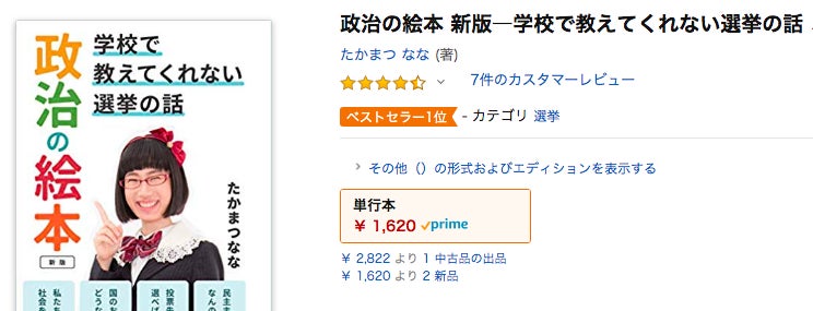 2019/08/02 12:22『政治の絵本』がアマゾンで第1位になっています。政治入門の本は売れないと言われているのに… この本は、ネトウヨにも、ド左翼にもうける本ではない。政治好きにも、うける本ではない。 政治って何?なんで選挙に行かなきゃ行けないの? 3分で分かる民主主義をはじめ政治の超入門書です。出張授業の内容を書籍化した私にとっては超大切な本です。 なぜ、突然1位になったかと言うと… オリエンタルラジオの中田敦彦さんがYouTube大学でご紹介してくださったからです。 次の日に1位。中田さんすごすぎるhttps://www.amazon.co.jp/dp/4335460406/そして、これは、YouTubeということもあり若者に届いている感じがすごくする…!!!これが一番嬉しいです。 政治のトリ説、『政治の絵本』多分30分で読めます。細かい知識ではなく、できる限り感覚的に本質を伝えることを意識しました。 大人の方は復習、そして我が子に胸をはって政治を説明できるようにしています。よろしければ、学校の図書館などにいれていただきたいです!学校の先生・うしろにワークショップのカードもつけていますので、教室現場でどんどんご活用ください。 https://www.amazon.co.jp/dp/4335460406/百田尚樹さん、橋下徹さん、共産党についての本に勝っている…!!! 政治入門書が売れないという常識を一緒に壊して下さい!リターンは随時お届けしますので、よろしければ、レビューにご感想書いてくださいませ〜。 皆さま本当に応援・ご拡散ありがとうございます。株式会社 笑下村塾 たかまつなな もっと見る