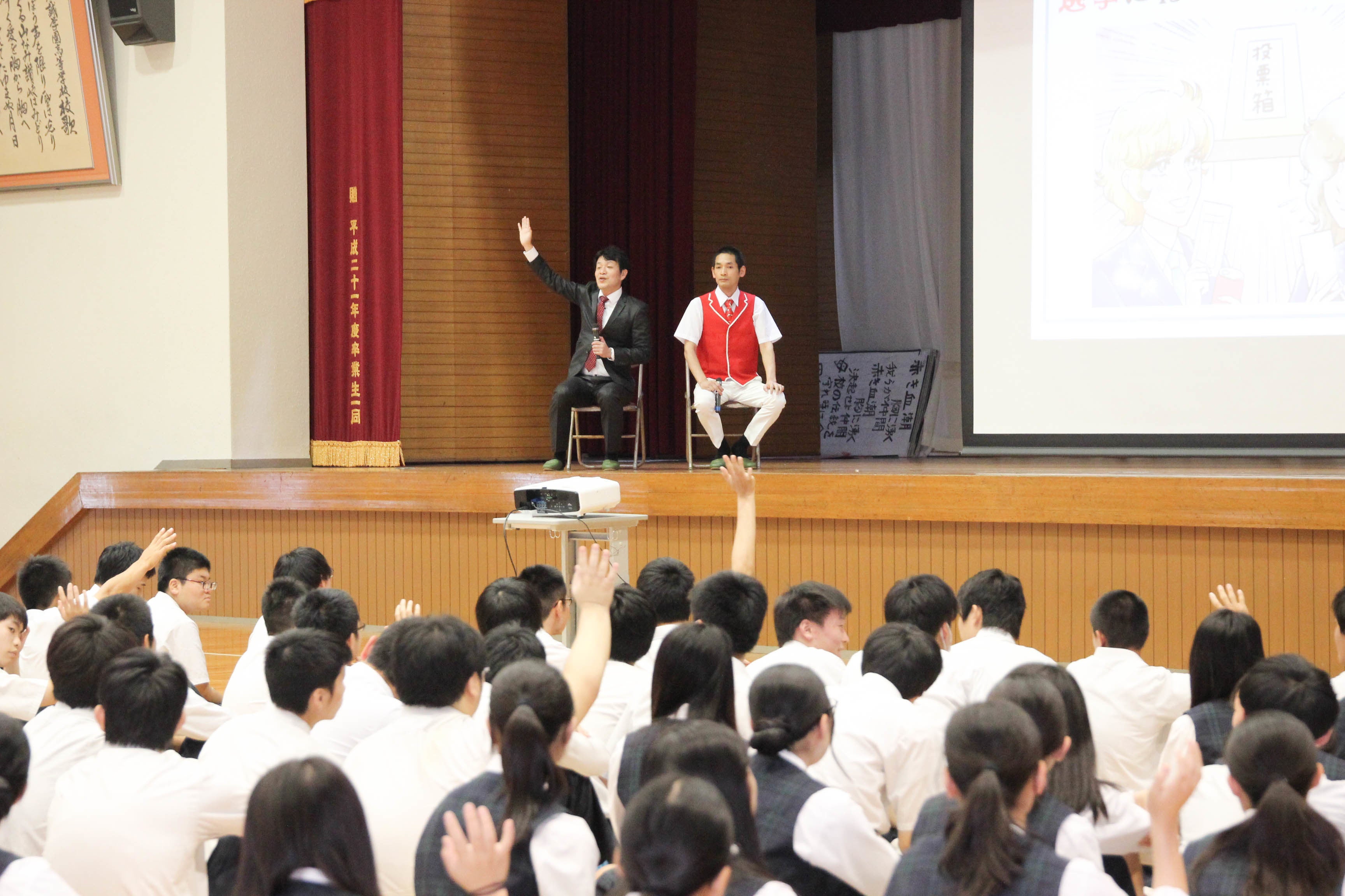 前回の参院選、18歳投票率ワースト5位の香川県は、ものまね芸人で香川県観音寺市出身のガリベンズ矢野さんと、エルシャラカーニさんにより3人での授業でした。