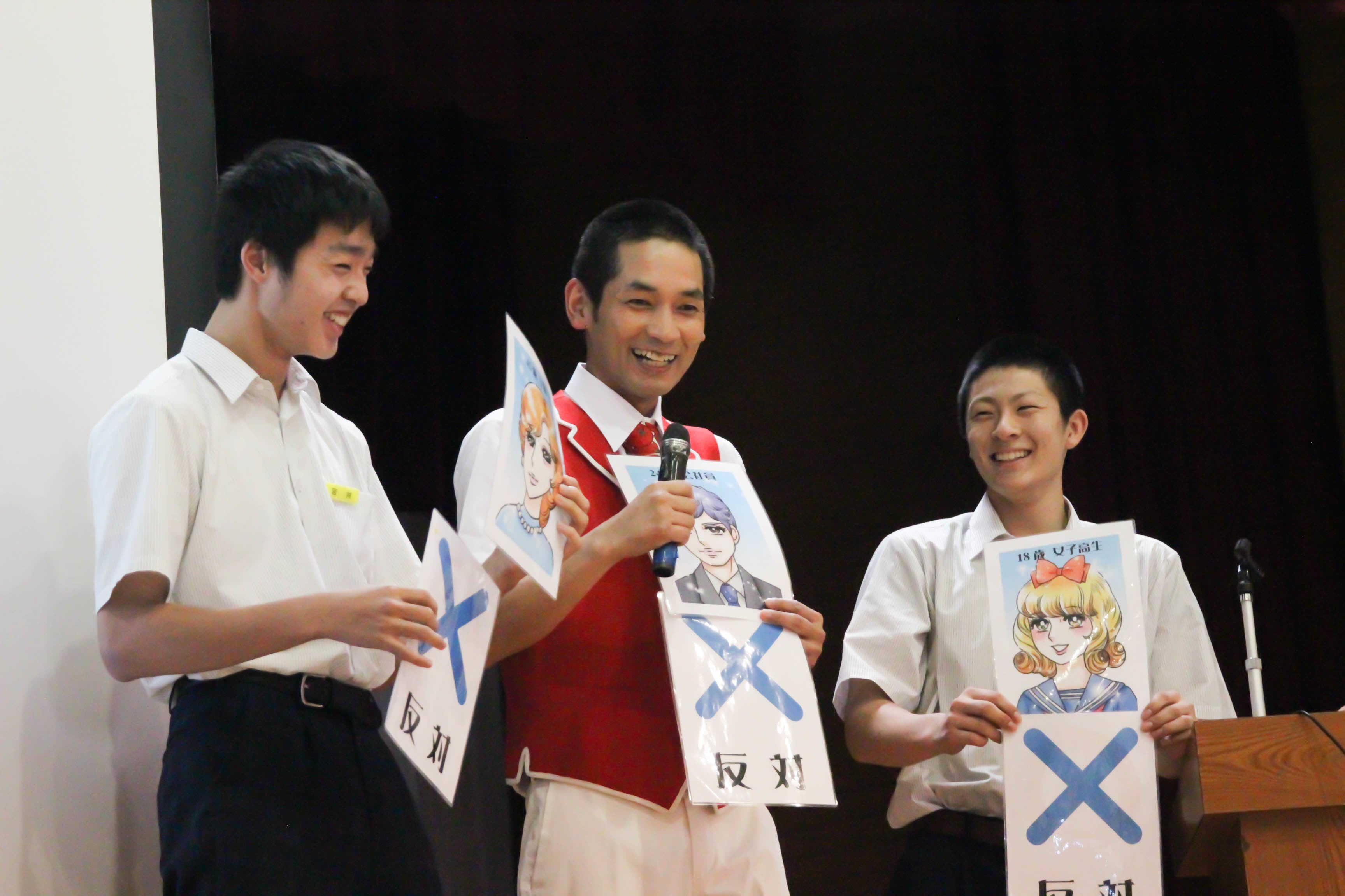 逆転投票シミュレーションゲームでは、それぞれの役にふんして、政策に対する意見を言ってもらいますが、みんなの演技がうますぎてびっくりでした。