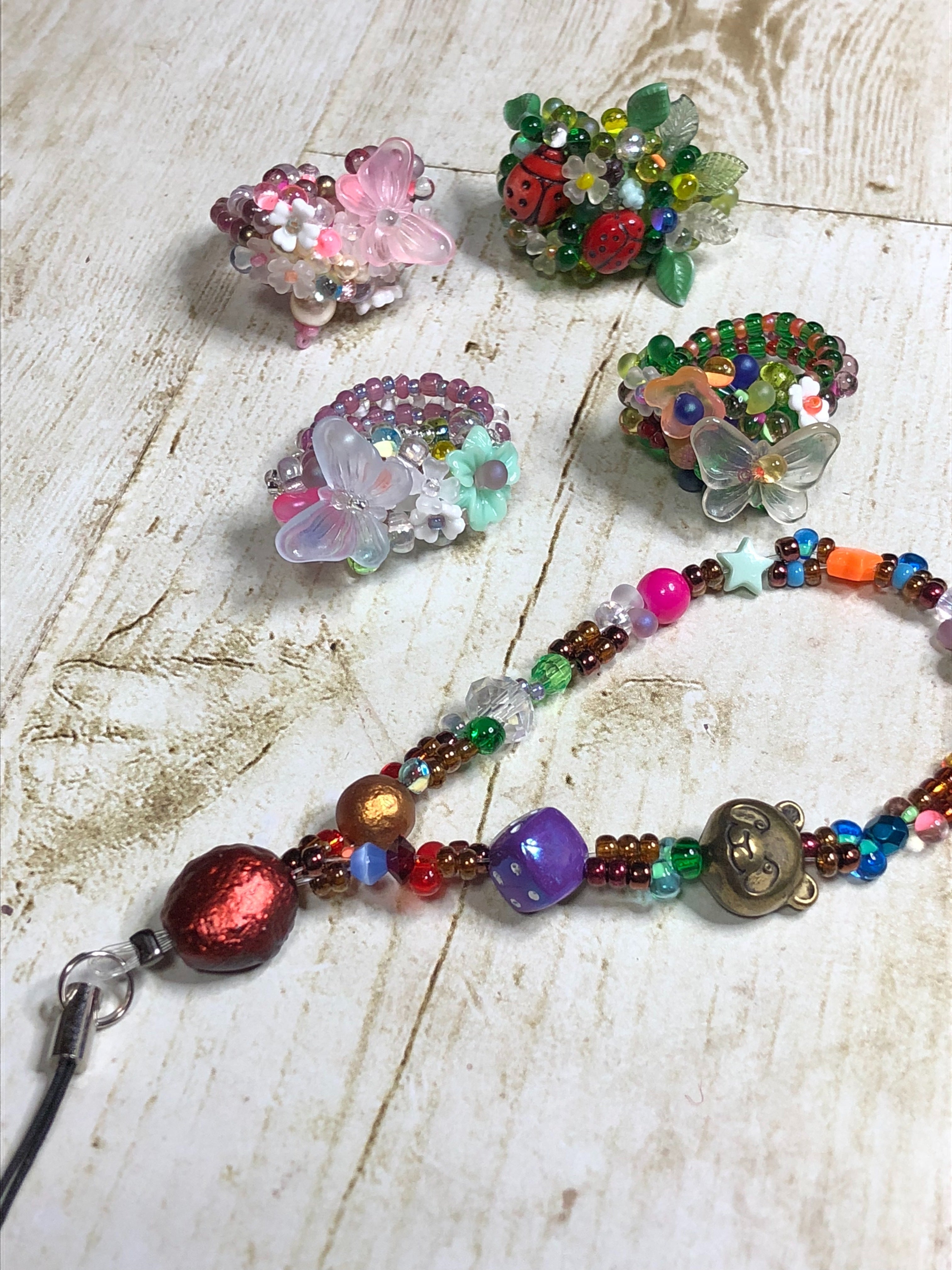 その後、独学でビーズアクセサリーを作り始めたところ、わずか2カ月後に出版社の目にとまり、いきなりビーズ作家としてデビューする事となり、雄鶏社から共著の形で「ビーズで作るアクセサリー」「ビーズ刺繍」の2冊を出しました。ビーズグランプリ2006でも優秀な成績を収めて表彰されました。