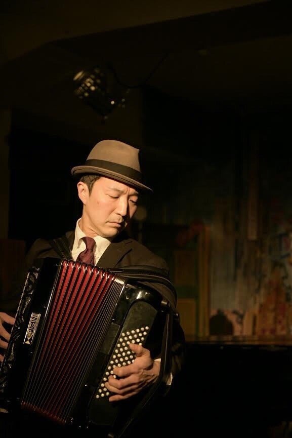 ロマンチックかつドラマチックなオリジナル曲を中心とした、アコーディオン弾き語りのスタイルで日本中のカフェ、バー、ライブハウスで活動中。