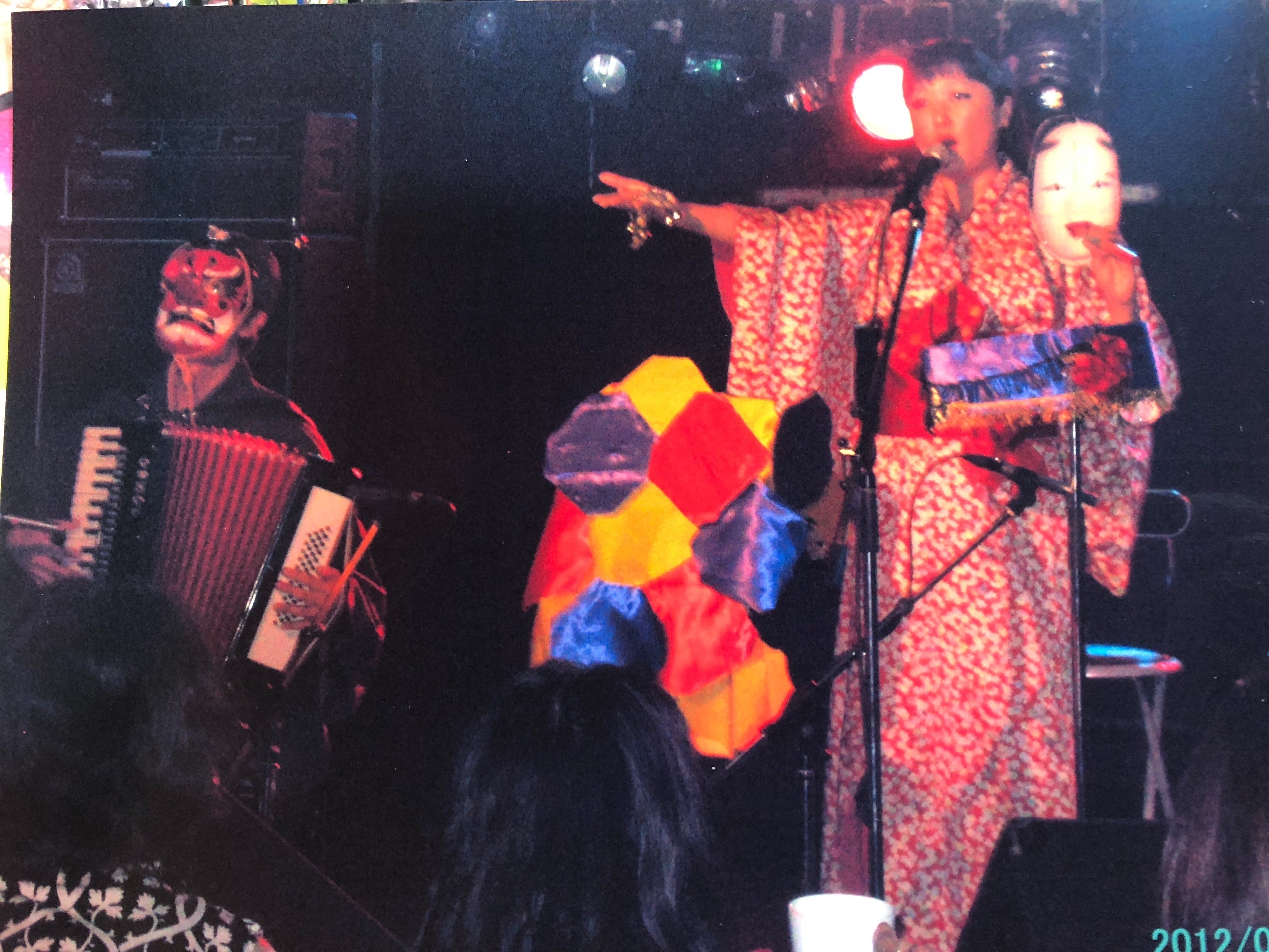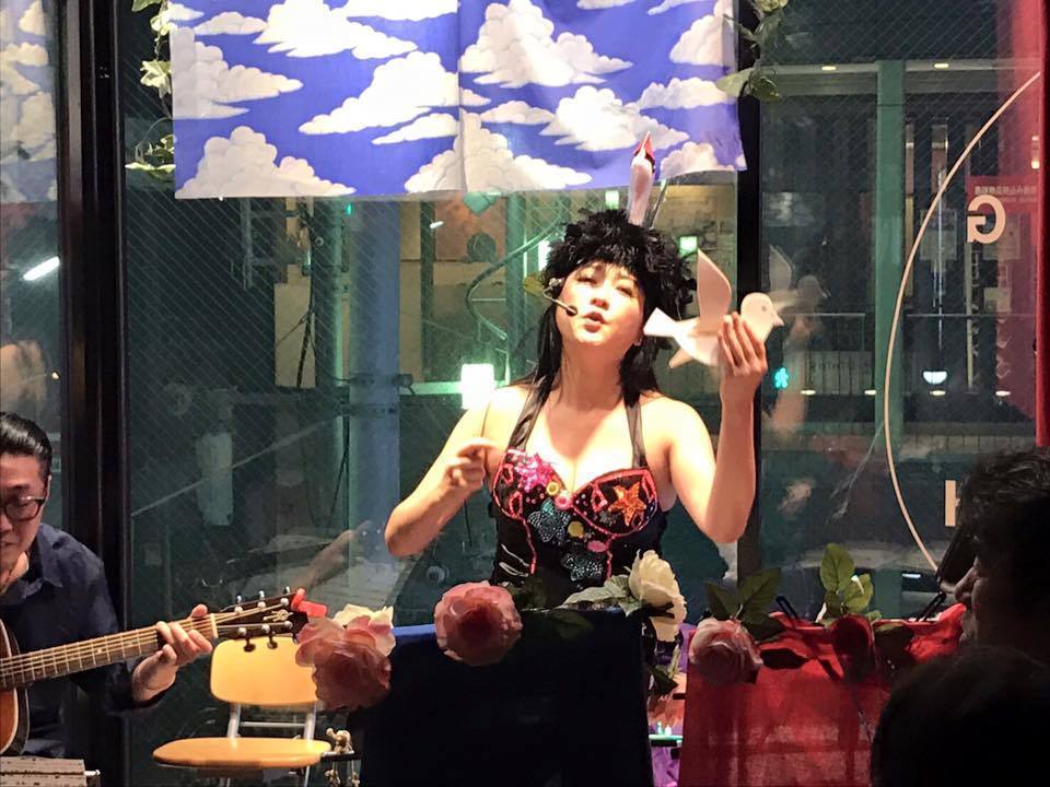 ライブの度に何か必ず新しい試みをお客様のために考えました。パンデーロを叩いたり、高尾山で買った竹笛を吹いたり、手品を取り入れ、歌詞に合わせて手から花や火や鳩を出したりしていました。当時のお客様達はどう反応していいのか困惑していましたが、徐々に評判となり、〝うたう秘宝館〟というキャッチコピーがつきました。