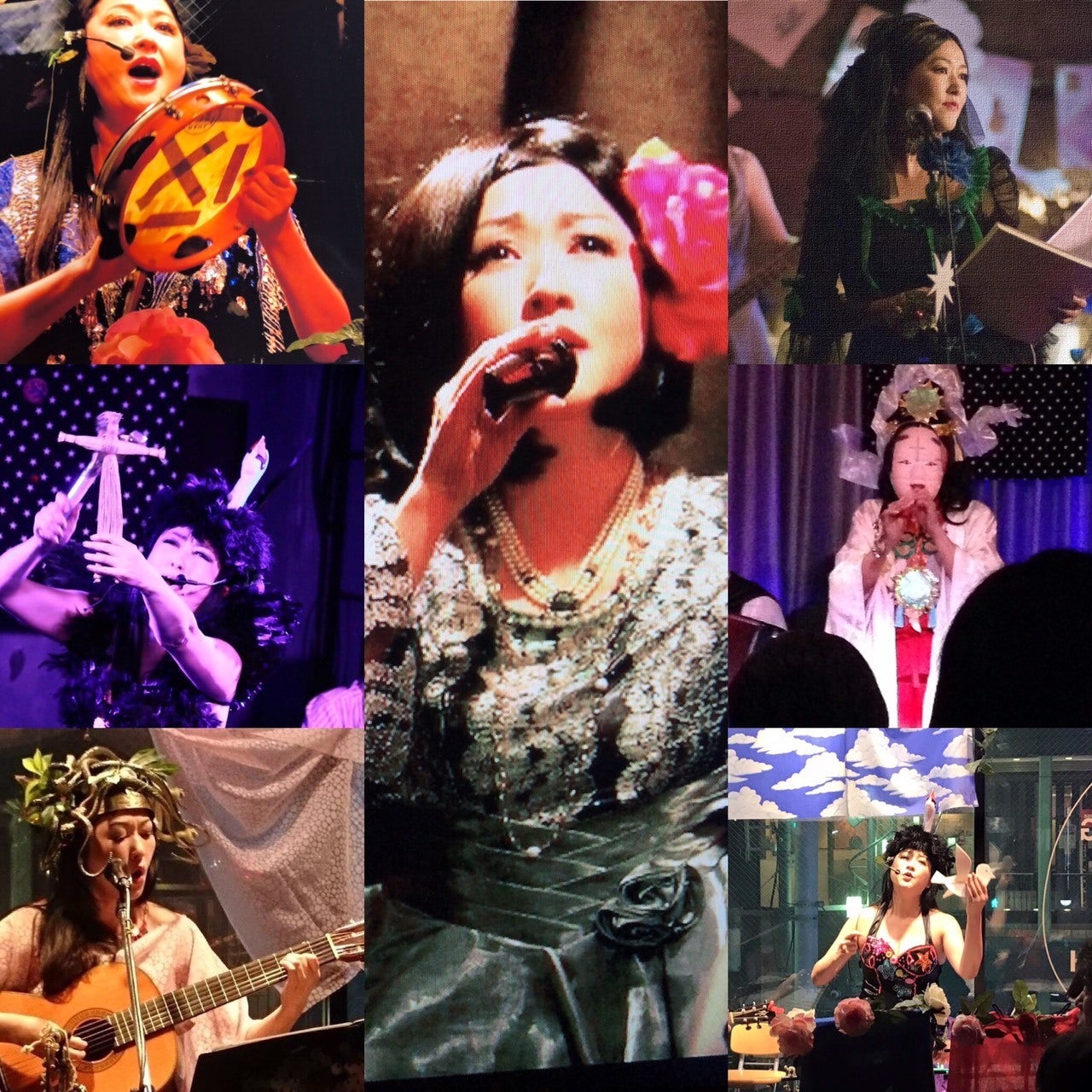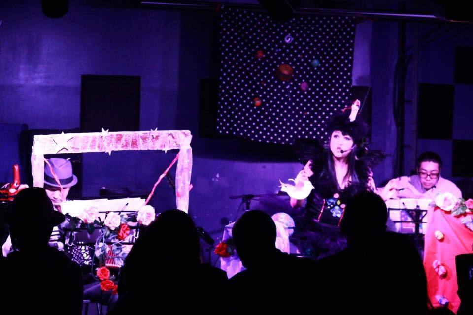 曲目毎に着替える衣装やステージ装飾、数々の曲目やパフォーマンスなどを、ショウにどんどん加えてました。ビーズ作家の頃の活動は、手作りの衣装や小道具に凄く生かされています。今ではオリジナルの戯曲を一人芝居ナレーションと歌で表現する形も取り入れています。お客様からも大好評の代表曲「苺の穴」という戯曲は、現在第4幕まで完成し、この物語はこれからも続いていきます。