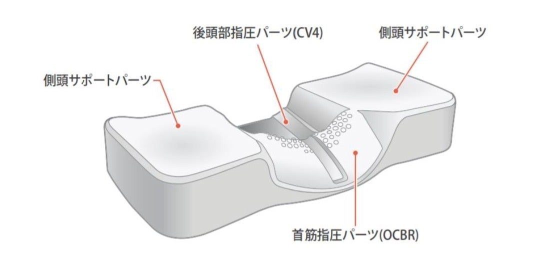 首と頭の理想的な睡眠角度である26度で設計。後頭部圧迫法(CV4)の機能を採用しました。