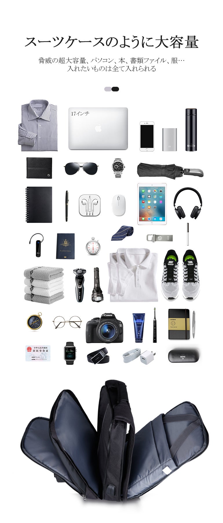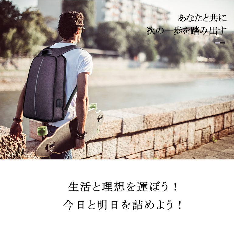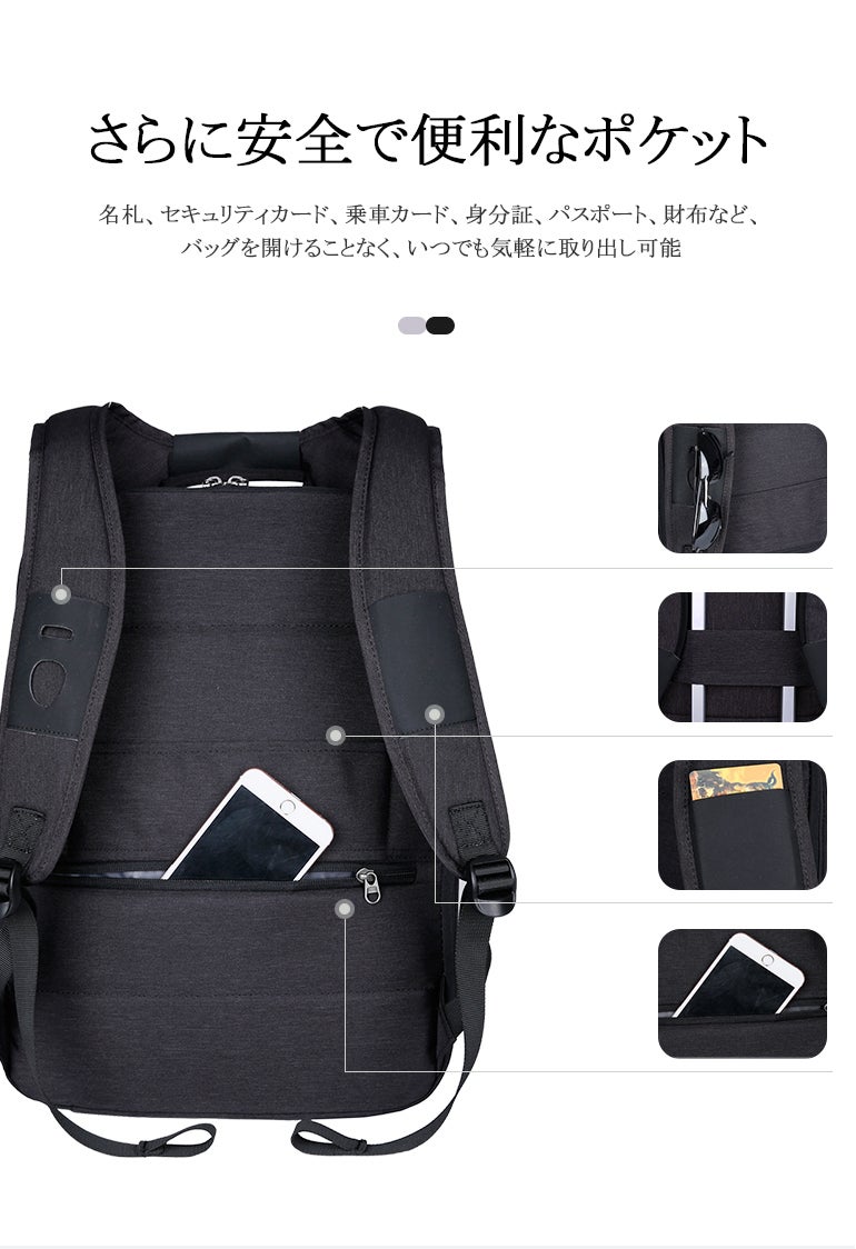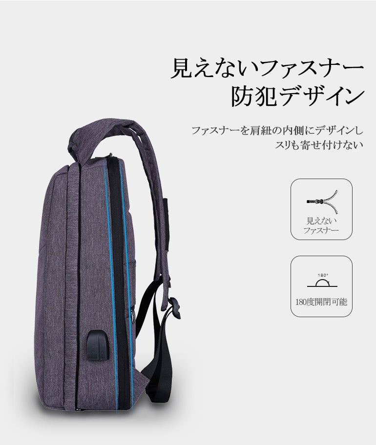 安全ポケットや見えないファスナーによって盗難リスク減にも注力しました。また外付けUSBポートやイヤホンポートも搭載。モバイルバッテリーや音楽プレイヤーを取り出すことなく使用できます。(モバイルバッテリー、ケーブルは付属されておりません。お手持ちのものをご使用ください。)