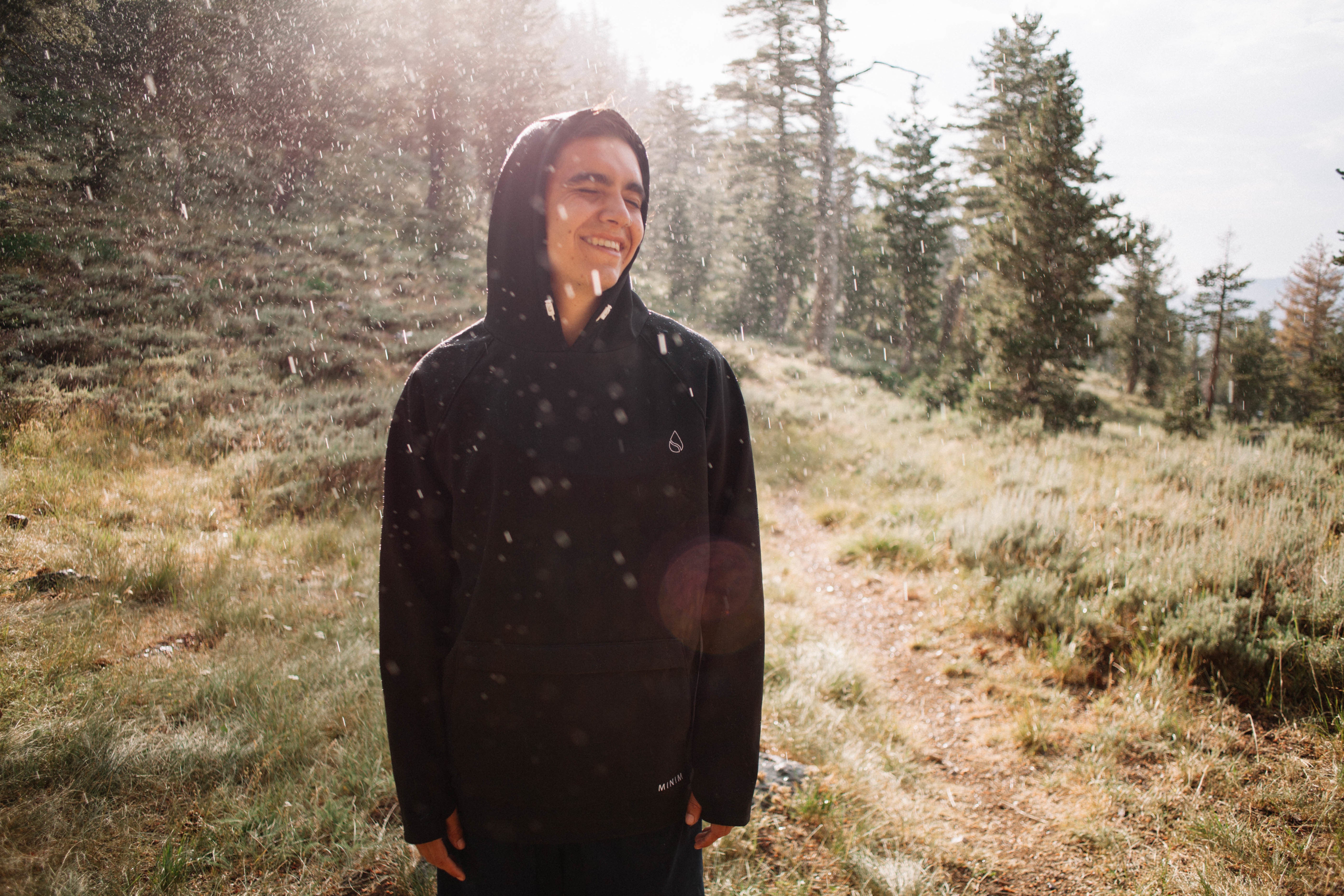 急な大雨でさえも、MINIMを着ていれば濡れません。