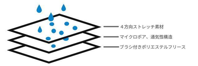MINIMの最先端技術は、素材のレイヤー構造にあります。防水性と快適性のバランスのとれた両立はこのレイヤー構造によるものです。