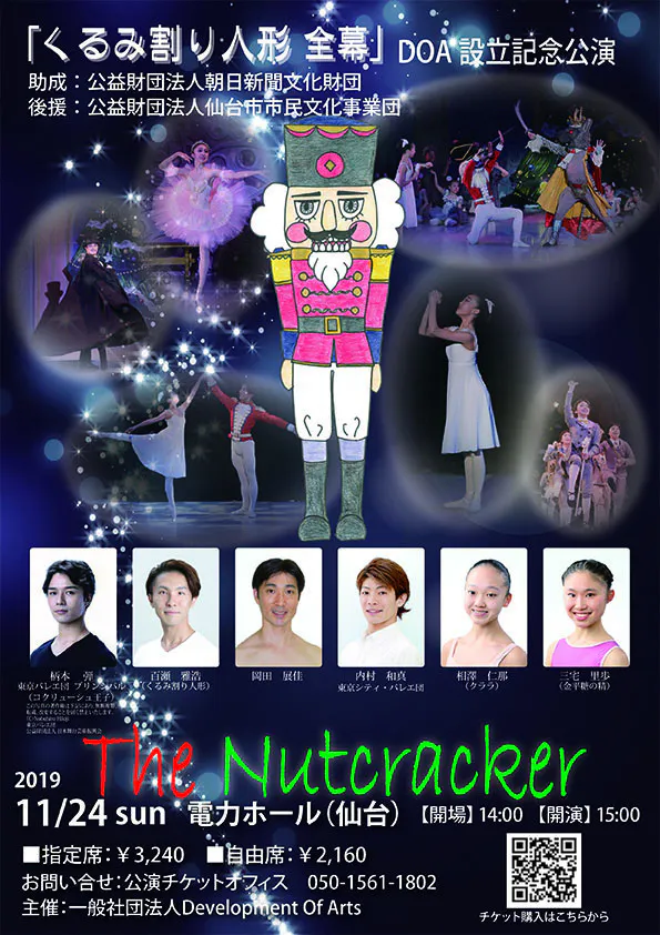 一般社団法人Development Of Arts(DOA)は、「仙台」の地にバレエ芸術の種を蒔き、育み、開花させ、その種子を再び次世代へとつないでいくための豊かな土壌と文化の醸成を目指し、昨年2月に設立したバレエを中心とする総合芸術団体です。