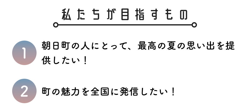 朝日町に住む方々に最高の夏の思い出を届けること、