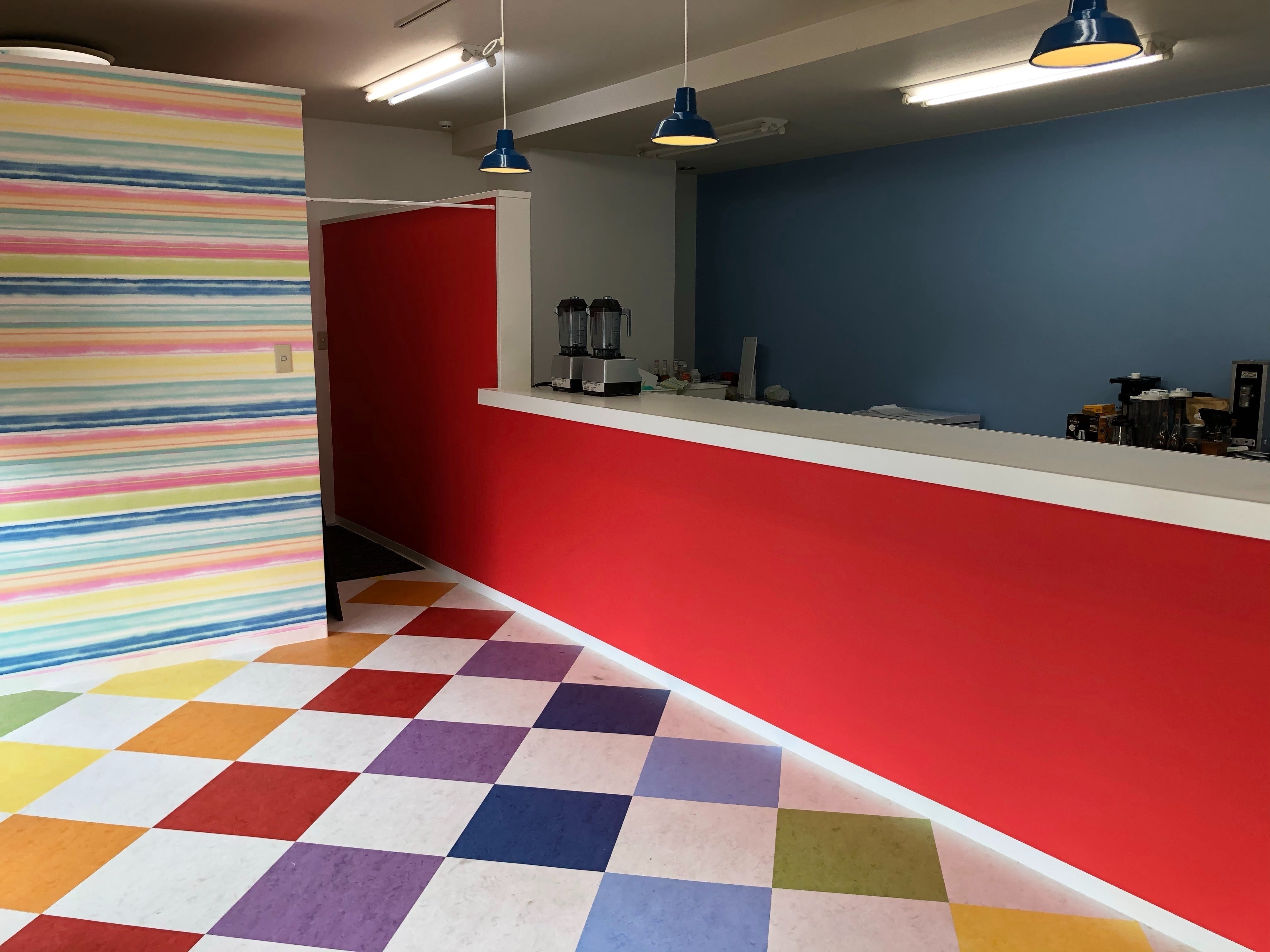 つい写真を撮りたくなるポップな店内とは裏腹に、まじめに丁寧にジュースを作っていきます。コーヒーは飲みやすくおいしいオリジナルブレンドです!コーヒー豆は、ギフトとしても販売する予定です。